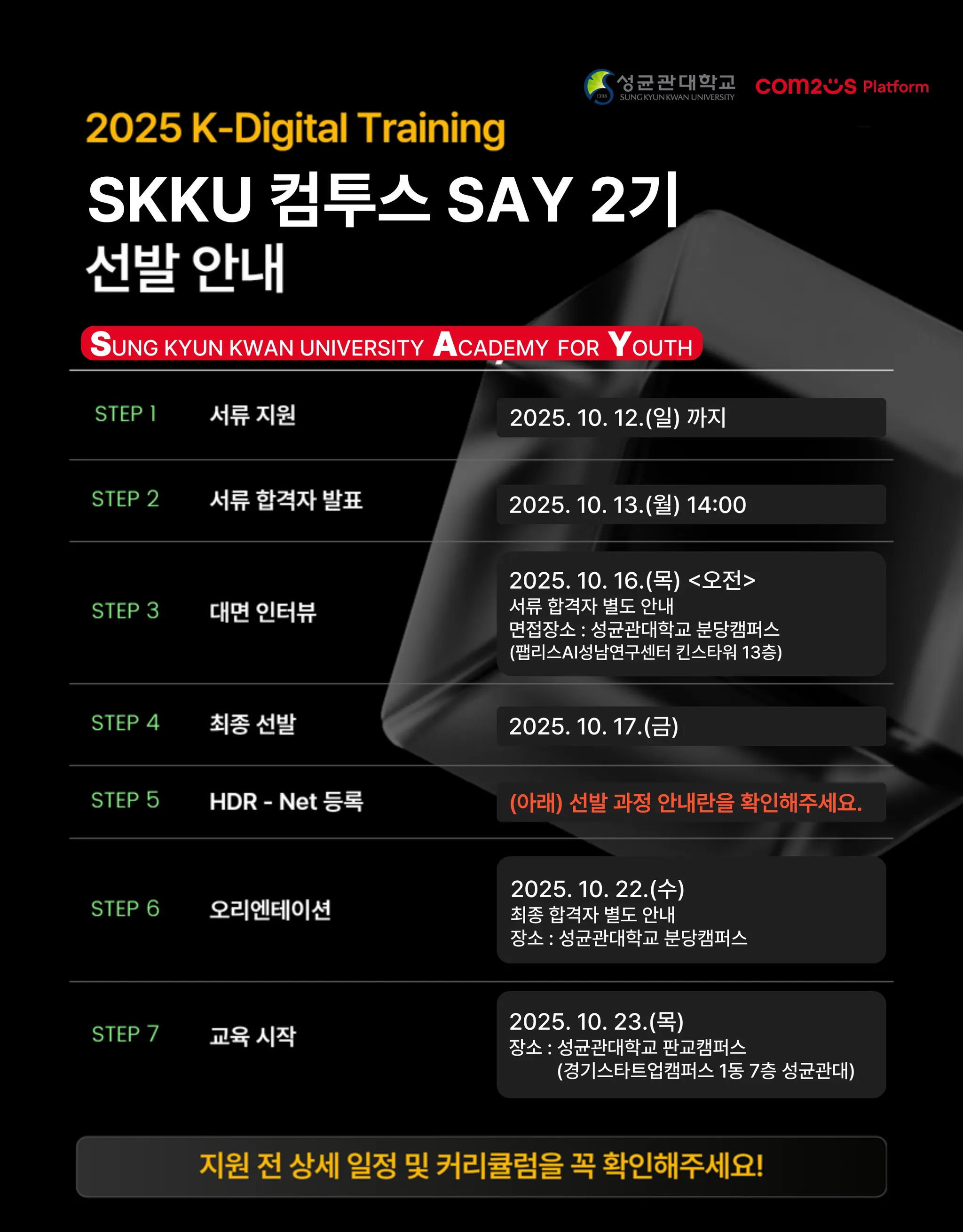 SKKU SAY의 모든 과정은 교육비가 전액 무료!